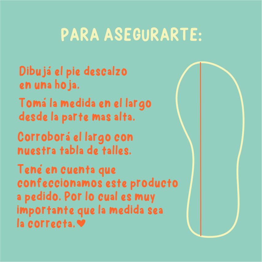 Ceden mucho por lo que lo mas recomendable es tener en cuenta el largo de plantilla simplemente. Al probarlas deben quedar anatómicas como una alpargata y luego ya en las primeras horas de uso se acomodan ellas solitas a la forma de tu pie ;) . (Chequear en la tabla de talles en las fotos del producto).